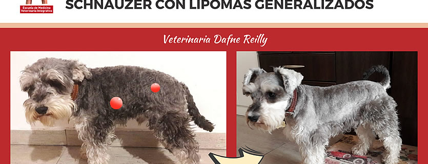Se utilizó acupuntura en un perro Schnauzer, macho, de 2 años, que presentaba 6 lipomas de diferentes tamaños, distribuidos en su cuerpo. Los lipomas fueron disminuyendo de tamaño notoriamente a la segunda sesión de acupuntura hasta disminuir completamente al terminar el primer mes.